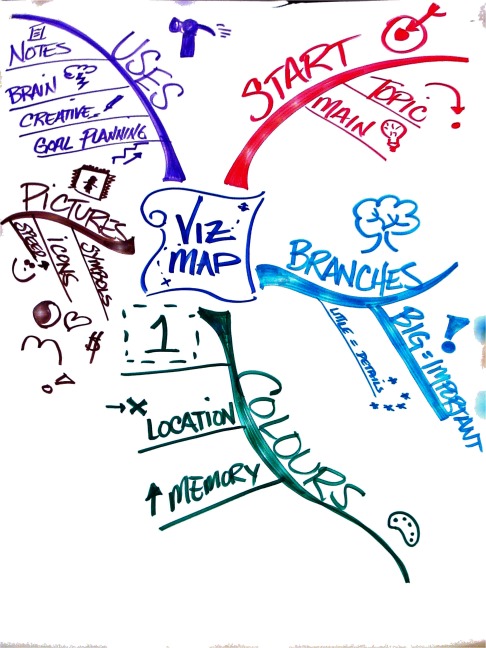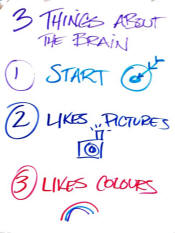 Remember the three things that we learned about our brains natural preferences: 1. The brain likes to start in the center 2. The brain likes pictures 3. The brain likes colors Instead of taking notes that start in the upper left hand corner...in one boring color...and without pictures...use the visual mapping tool to unlock your brains creativity and increase retention. The visual mapping tool is easier to review and enables your brain to remember information in multiple ways: