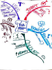 The visual mapping tool can be used to brain-storm, kick-off the creative writing process, detail a plan, take notes and get organized. It's brain friendly and fun to do. |